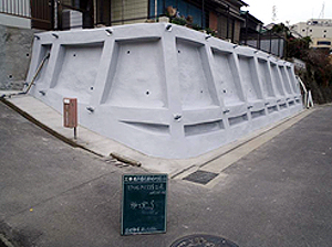- 古くなったモルタル吹付け面の補強や景観の向上を目的とした増厚工