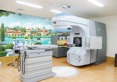 例1.威圧感を与えることのないように、リニアック室の迷路部分に開放感のある風景画を施しました。